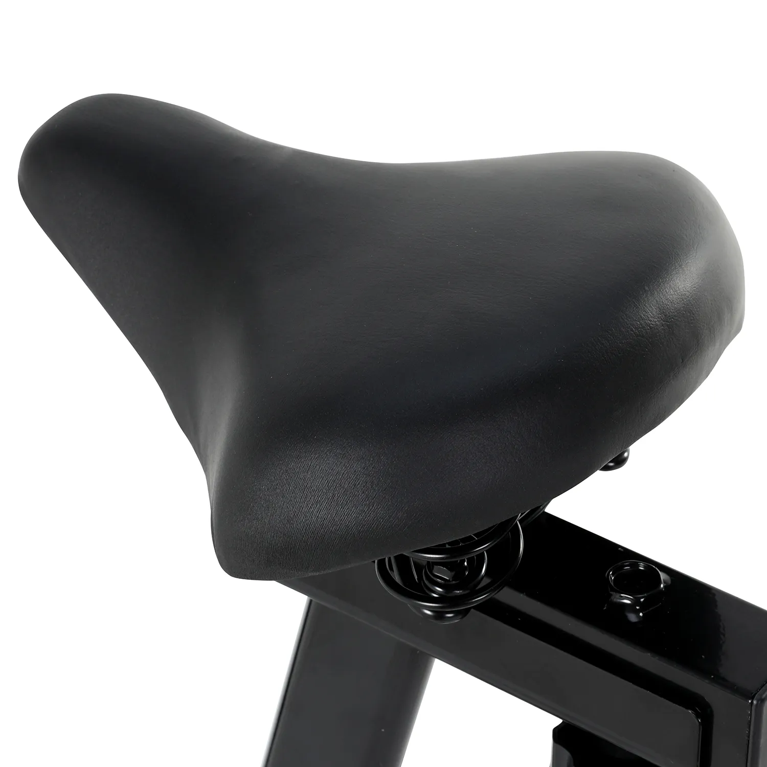 Bicicleta Spinning K300 es la aliada perfecta para entrenamientos de alta intensidad desde la comodidad de tu hogar. Equipada con un volante de inercia de 6 kg fabricado en hierro, garantiza un pedaleo fluido y estable. Su sistema de transmisión por correa (belt-drive) ofrece un funcionamiento silencioso y de bajo mantenimiento, perfecto para entrenamientos sin interrupciones. Diseñada con una estructura de acero y plástico resistente, esta bicicleta soporta hasta 120 kg de peso. Su manillar ergonómico, fabricado en acero con recubrimiento HDR, y su asiento ajustable en 7 niveles permiten personalizar la experiencia según la altura del usuario (150 – 190 cm). El monitor LCD integrado proporciona datos en tiempo real sobre velocidad, distancia, tiempo, odómetro y calorías quemadas, ayudando a optimizar cada sesión de ejercicio. Además, cuenta con pedales de plástico con ajuste para mayor seguridad y un freno de seguridad para detener la bicicleta de inmediato si es necesario.