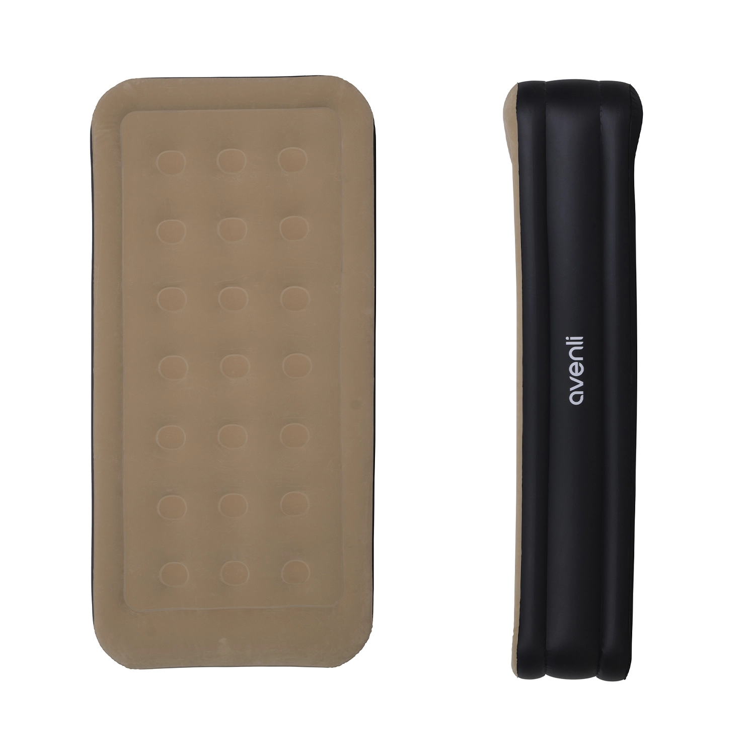 Su diseño de parte superior flocada aporta suavidad al tacto, mientras que la estructura circular en la base y parte superior garantiza firmeza y estabilidad durante toda la noche. Con medidas de 196 cm de largo, 97 cm de ancho y 47 cm de alto, entrega un descanso elevado y cómodo, similar a una cama tradicional.