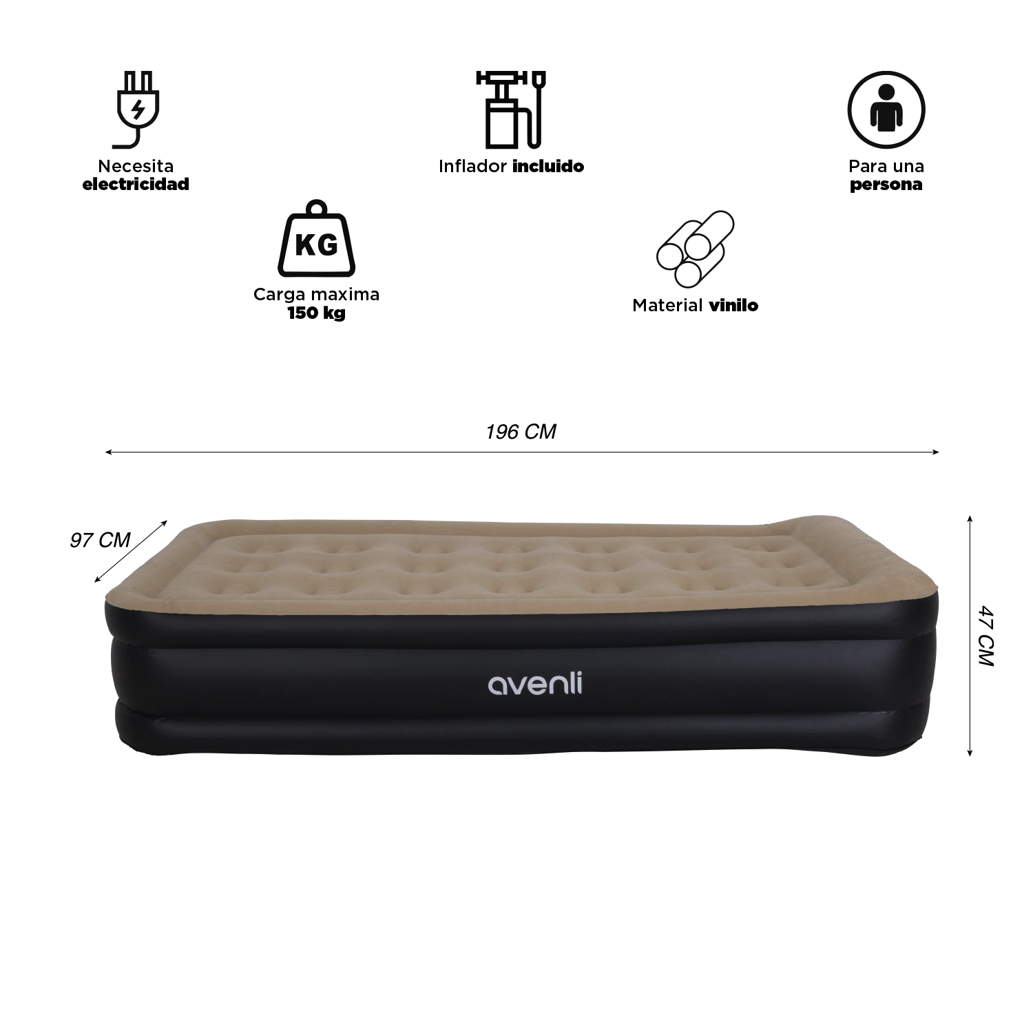 Su altura de 47 cm lo hace más confortable que los colchones inflables convencionales, facilitando levantarse y acostarse.