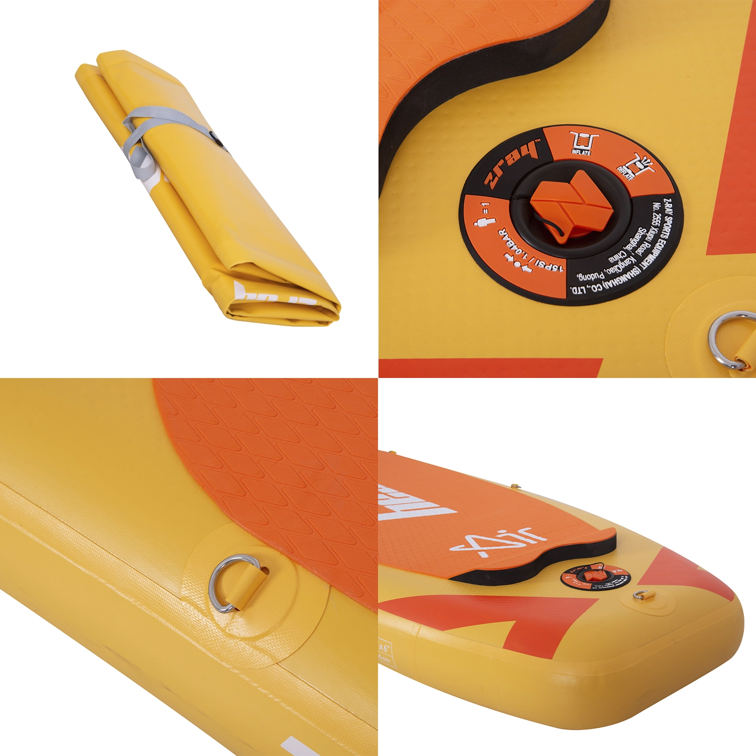 Con sus dimensiones de 320 cm de largo, 81 cm de ancho y 15 cm de alto, ofrece un excelente equilibrio para usuarios que buscan mayor control. Pesa solo 7,8 kg y soporta hasta 150 kg, lo que la convierte en una alternativa versátil para principiantes y avanzados. La aleta central facilita la dirección y, con una presión de inflado de 15 PSI, alcanza la rigidez de una tabla sólida sin perder la ventaja de ser inflable y portátil.