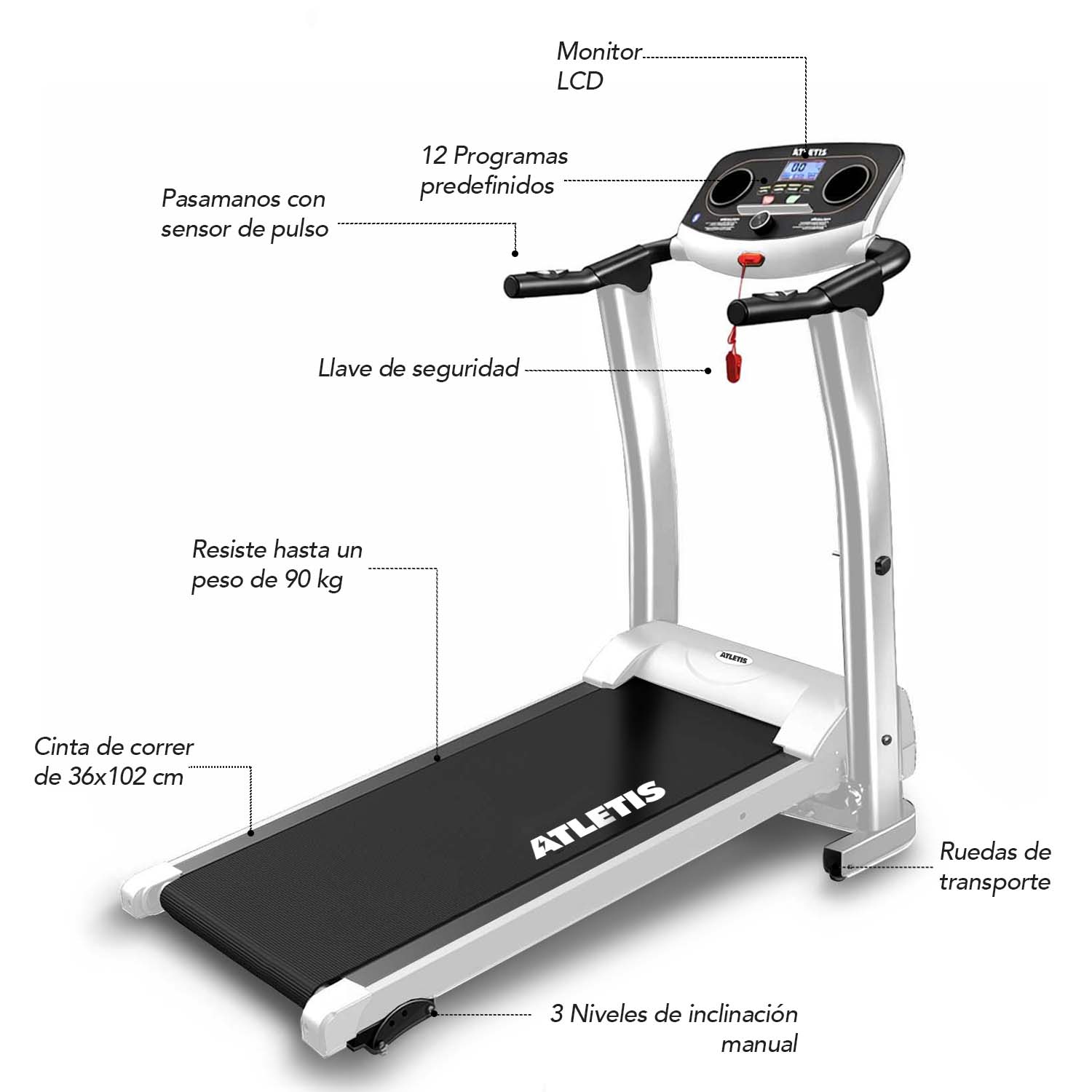 Entrena caminata o trote a tu ritmo con velocidad hasta 12 km/h y 12 programas.
