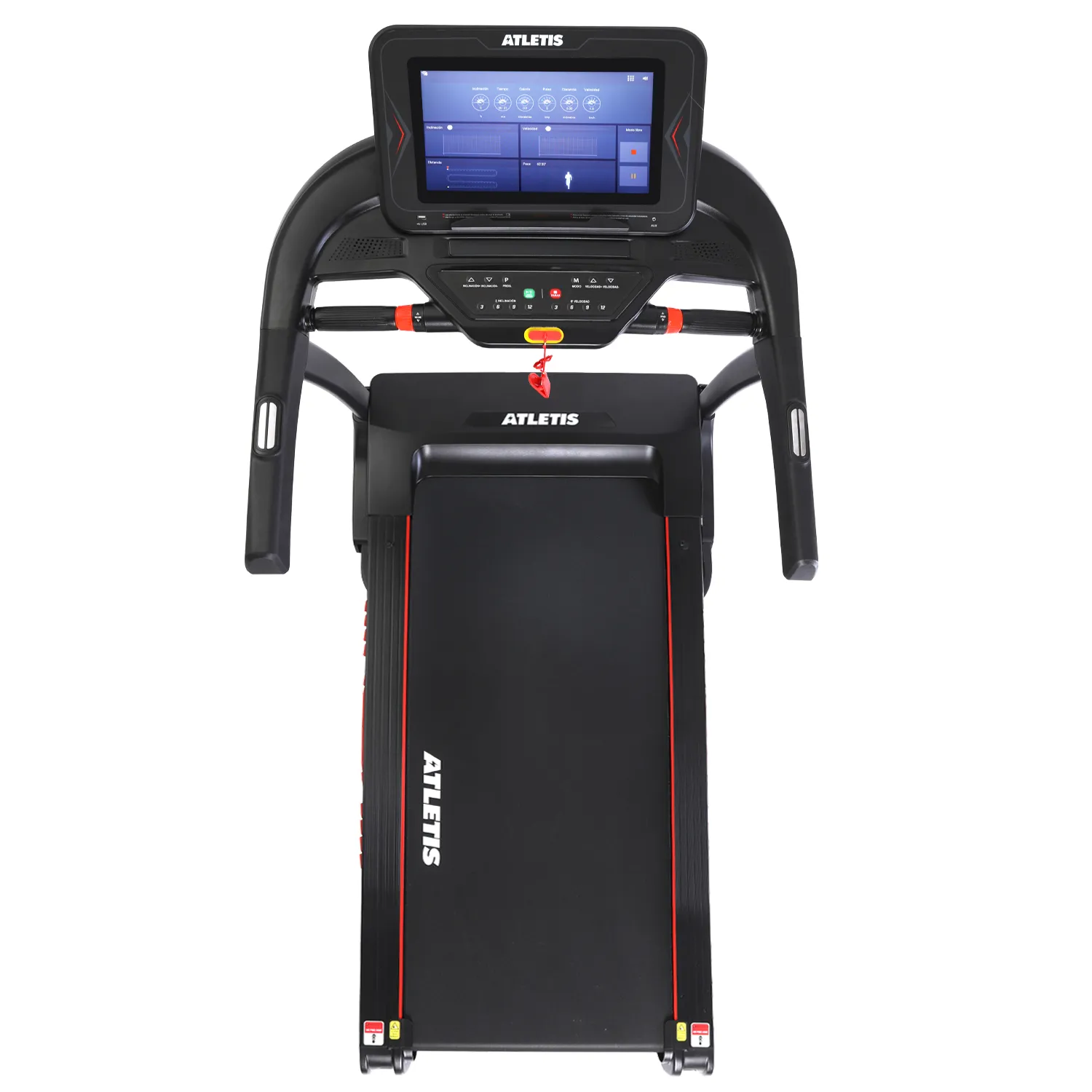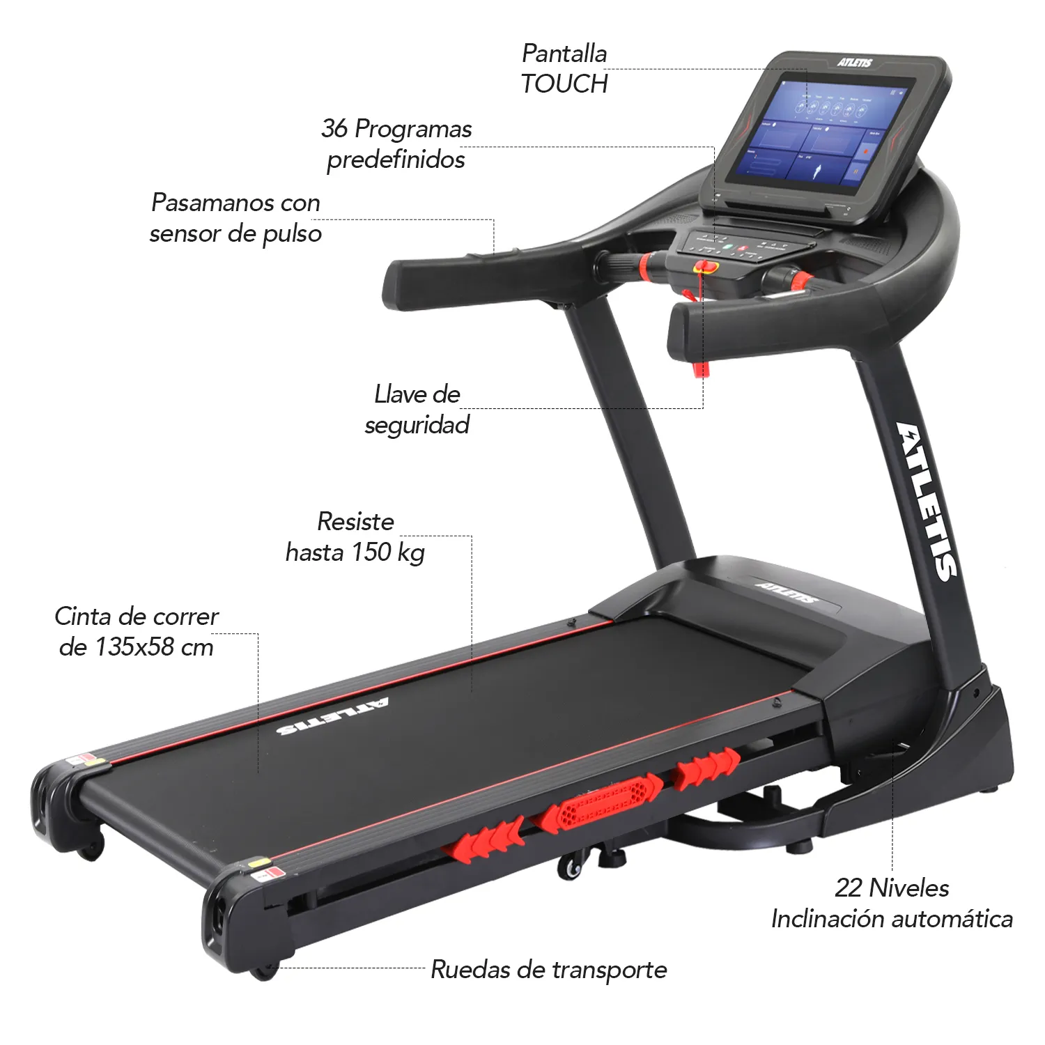 La pantalla táctil de 15.6” ofrece un control intuitivo y muestra métricas clave como tiempo, velocidad, distancia, calorías, pulso e inclinación, ayudándote a optimizar tu rendimiento. Con 36 programas preestablecidos, podrás variar tus rutinas y mantenerte siempre motivado.
