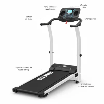 Incluye 12 programas predefinidos, sistema de amortiguación que protege las articulaciones y funciones de seguridad como llave de emergencia y parada automática. Todo en un diseño plegable con ruedas que facilita su traslado y almacenamiento.