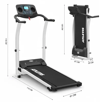 Fabricada en acero, madera y PVC, soporta hasta 100 kg de usuario y ofrece 3 niveles de inclinación manual que permiten simular entrenamientos más exigentes y fortalecer la resistencia. Su pantalla LCD de 3,5” muestra velocidad, tiempo, distancia, calorías y frecuencia cardíaca gracias a los sensores de pulso integrados.