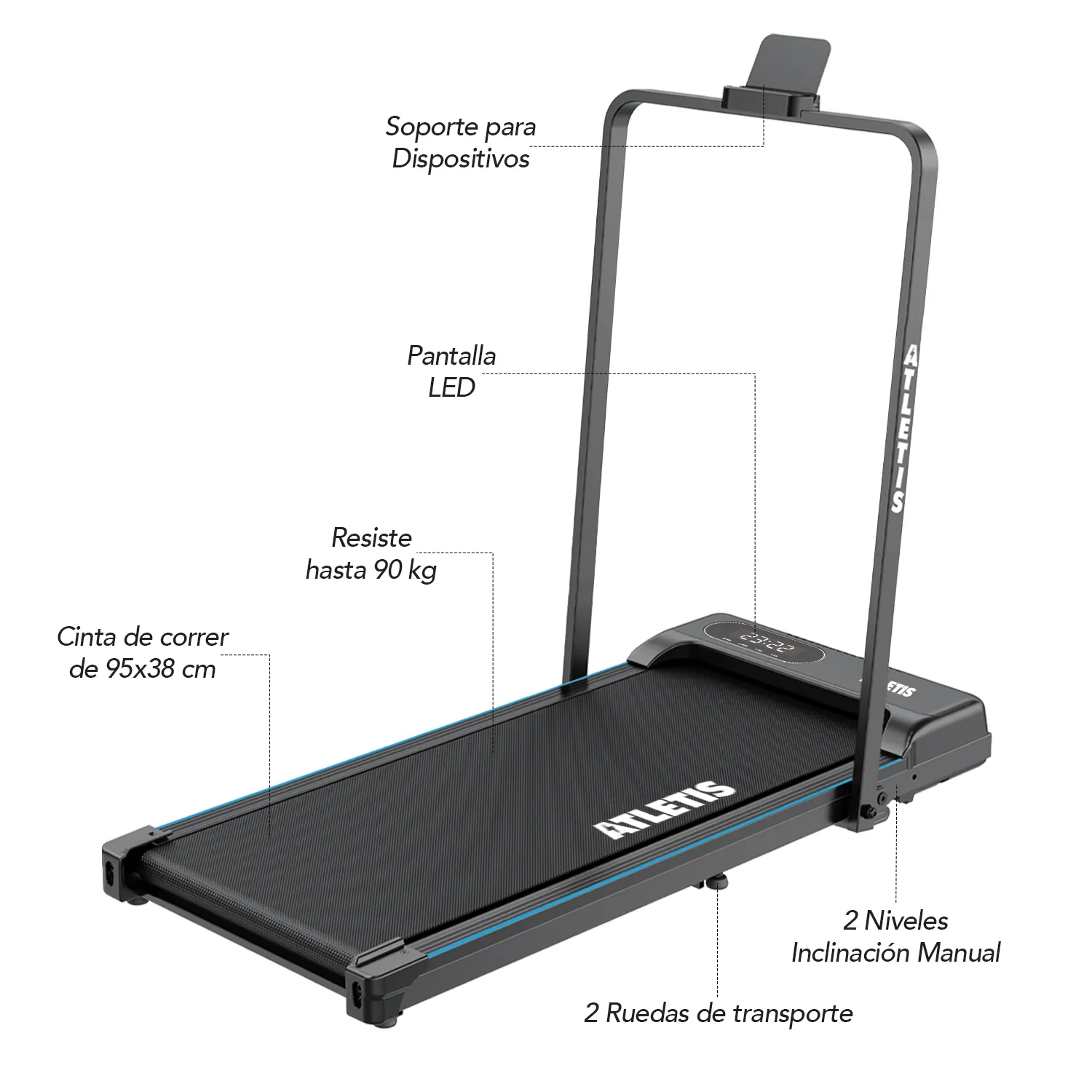 • Área de trote: 38×95 cm