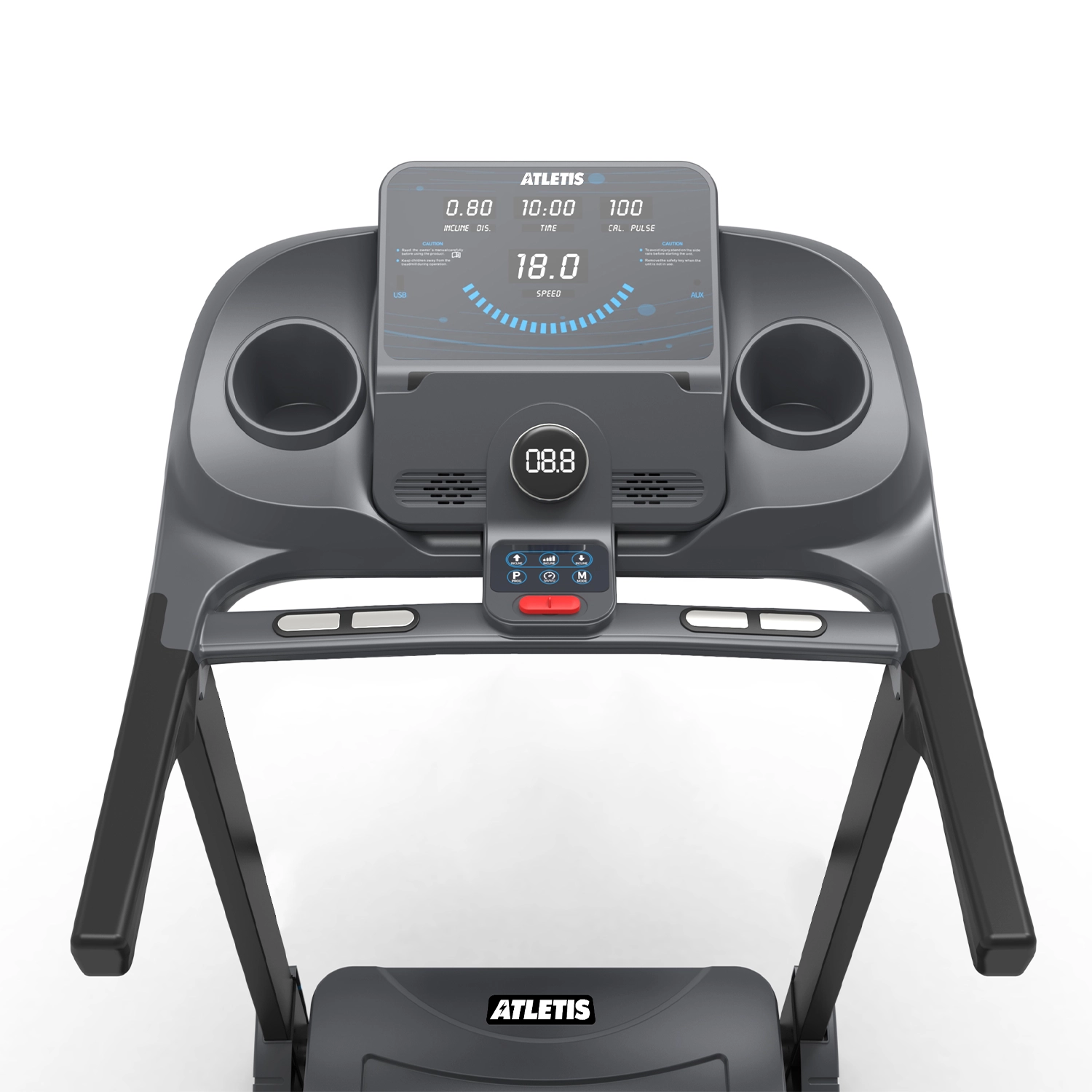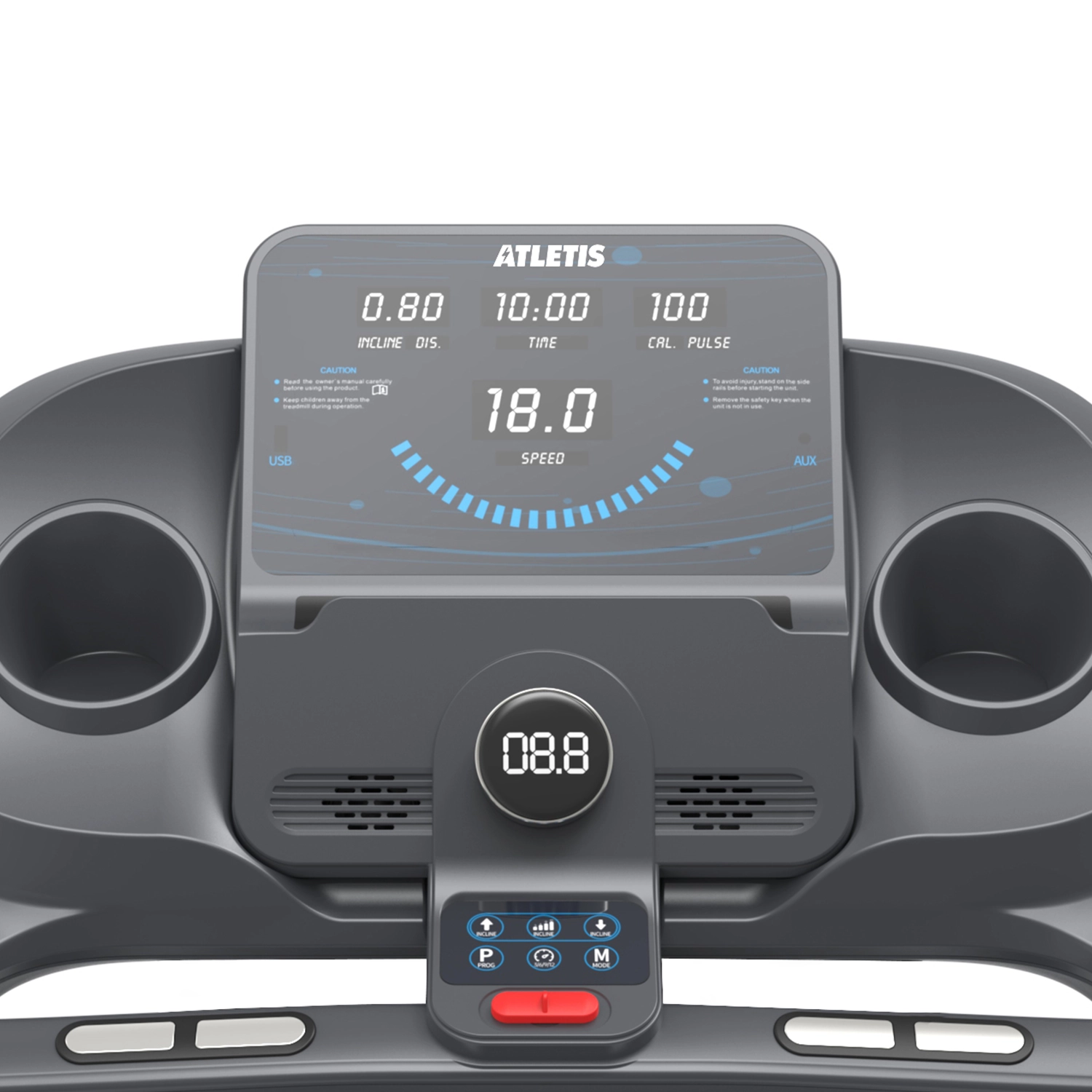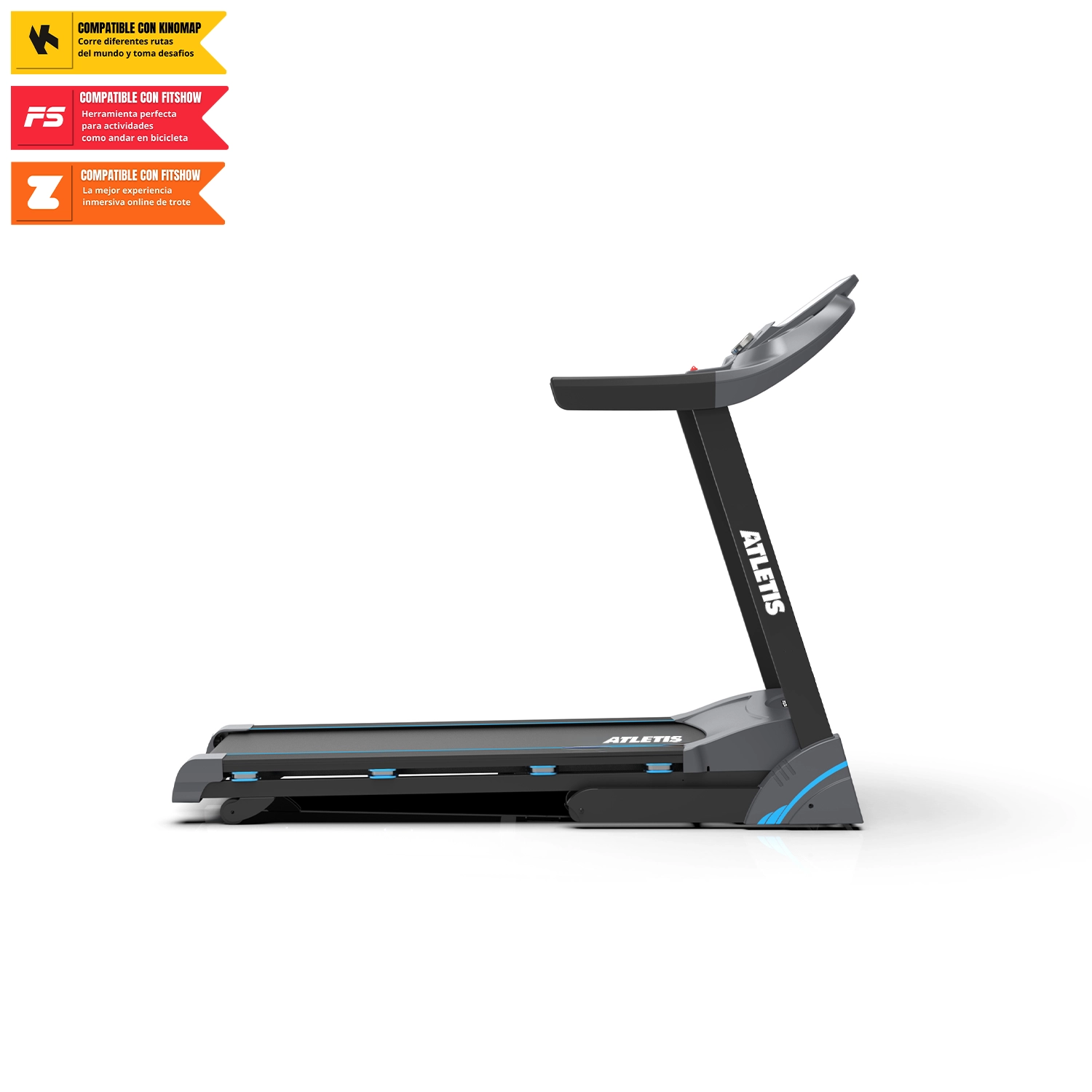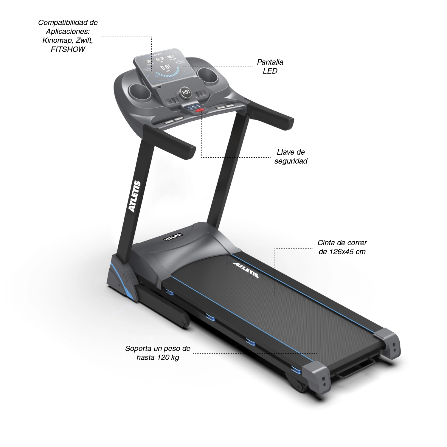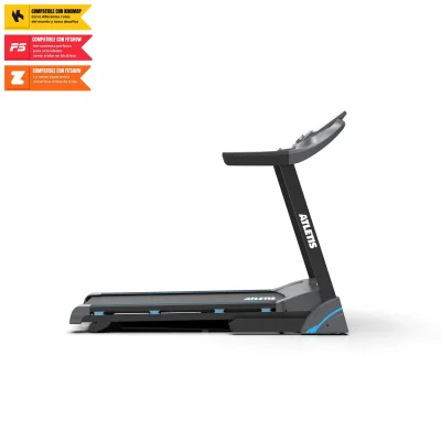 La pantalla LED muestra métricas como tiempo, velocidad, distancia, calorías y pulso. Con 24 programas de ejercicio y conectividad multimedia (Bluetooth, puerto USB, entrada MP3 y altavoces), convierte cada sesión en una experiencia entretenida. Además, es compatible con apps como Kinomap, Zwift y FitShow, que te ayudan a registrar y potenciar tu progreso.